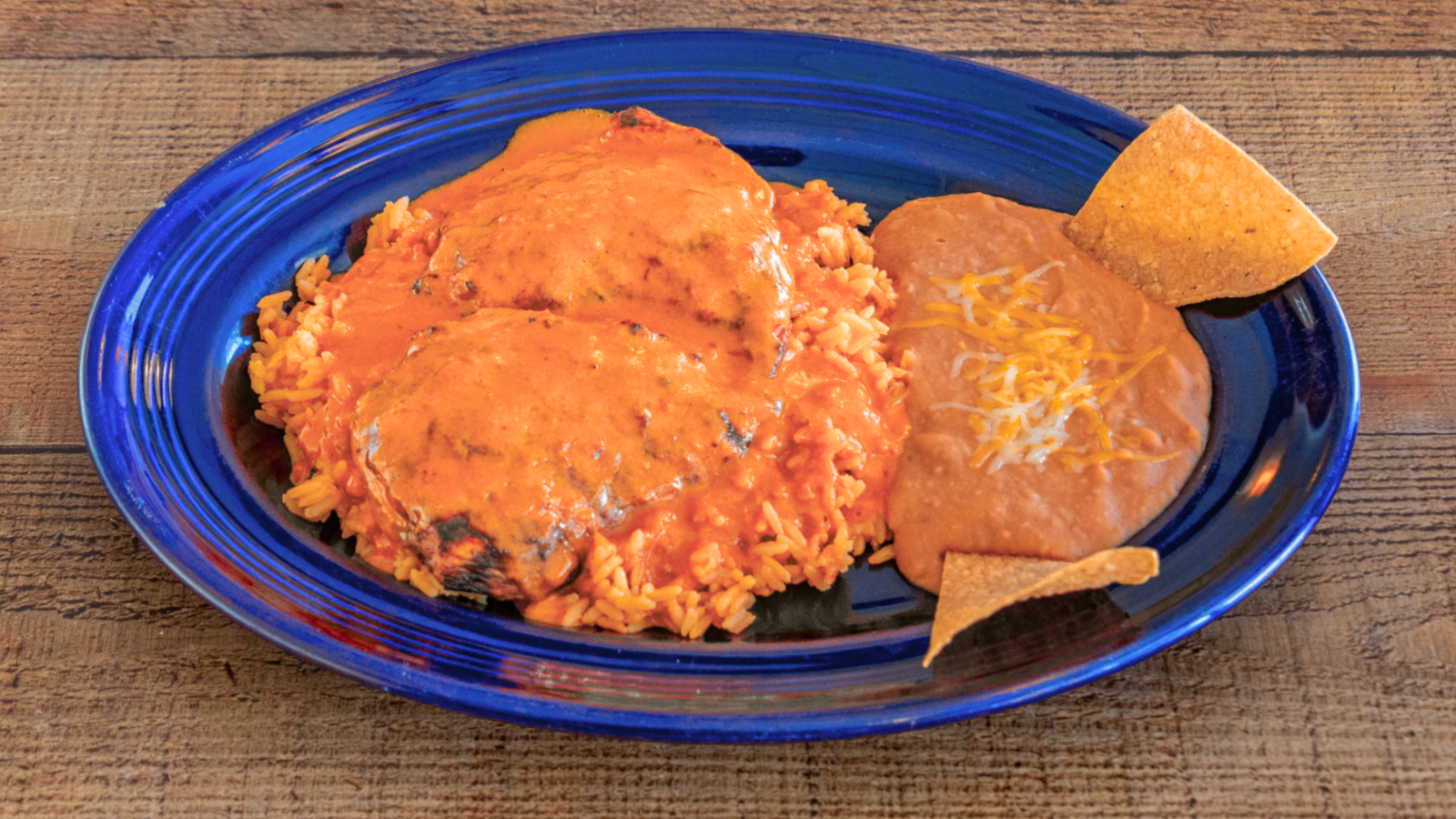 - Our signature menu item is Creamy Chipotle Chicken: Grilled chicken marinated in our special chipotle sauce and served over rice with a side of beans & flour tortillas!